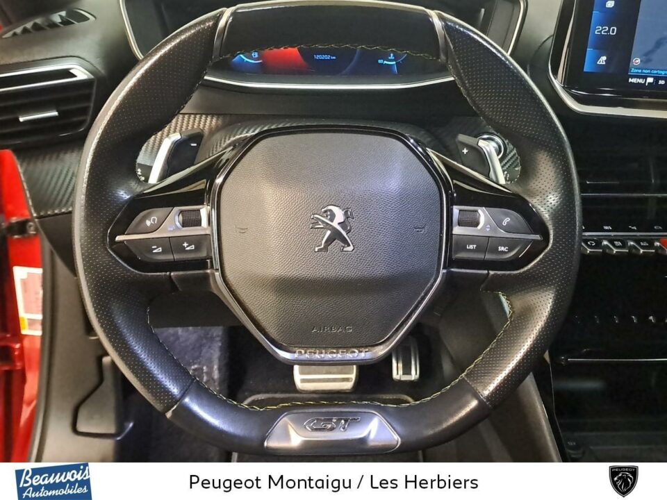| Lion chromé et badge GT et commandes multimédia sur volant | |